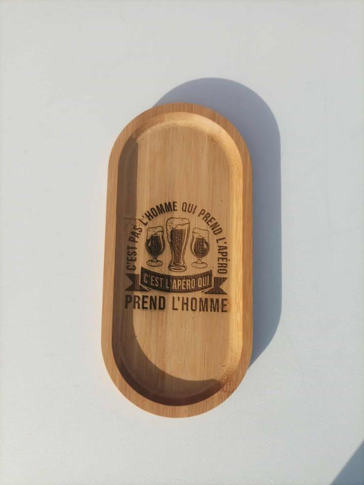 Planche apéro en bois – C’est pas l’homme qui prends l’apéro – 22,5×10,5cm