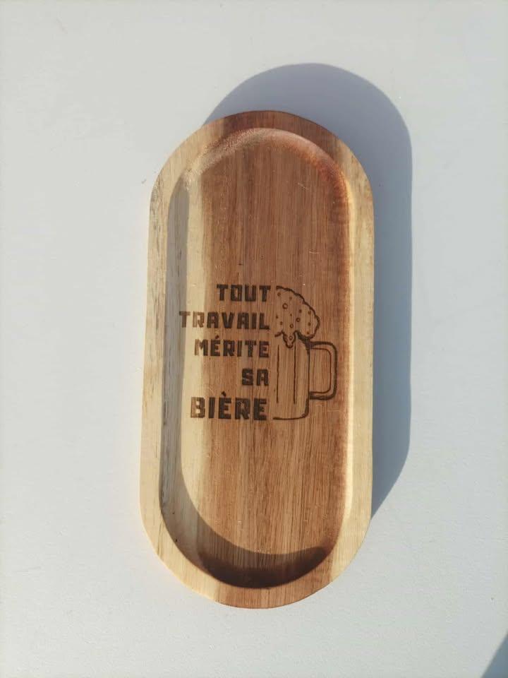Planche apéro en bois – Tout travail mérite sa bière – 22,5×10,5cm