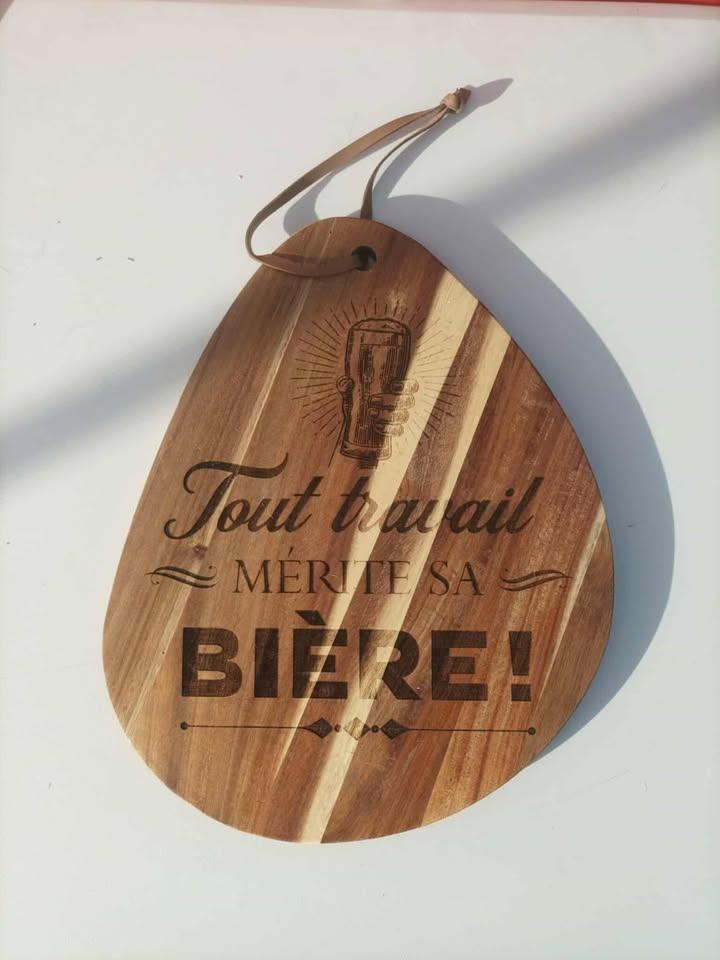 Planche apéro en bois – Tout travail mérite sa bière – 36x28cm