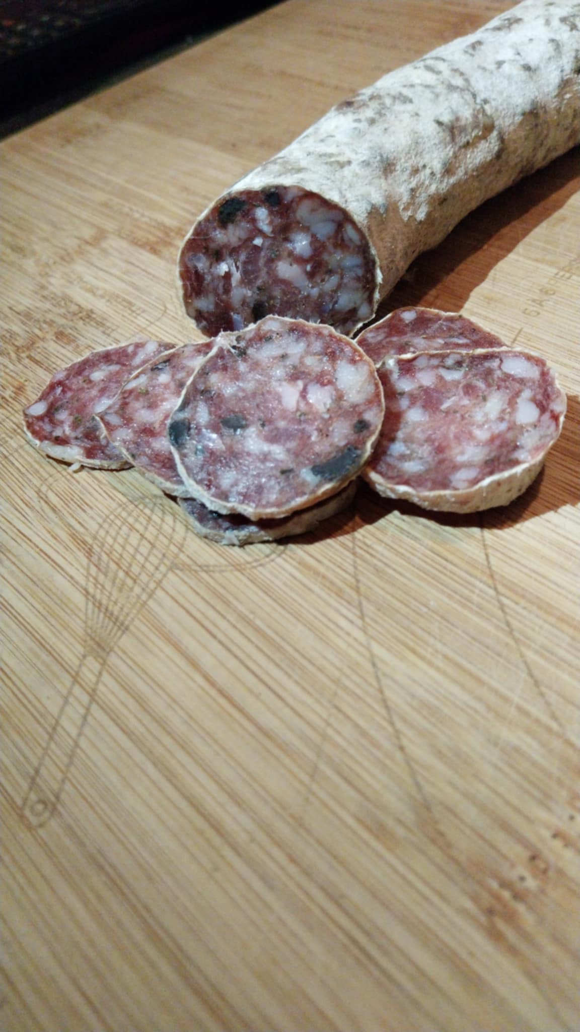 Ce saucisson est fabriqué en France, dans le respect des méthodes traditionnelles. Nous privilégions une production à taille humaine, avec un soin particulier porté à chaque étape : choix des viandes, mélange des ingrédients, embossage, séchage naturel. Résultat : un produit authentique, sans compromis, fidèle à la charcuterie d’antan.